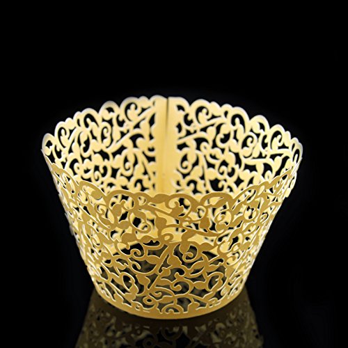 Bit Fly 108PCS Vintage Little Vine Laser Cut Cupcake Wrapper Muffin Case Cupcake Papper Cup Liner Birthday Wedding Cake Wrapper (Gold)