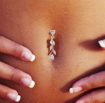 ZWZCYZ Dangle Bar Belly Button Rings Body Piercing Gold 14G Reverse Sexy Navel Rings (White)