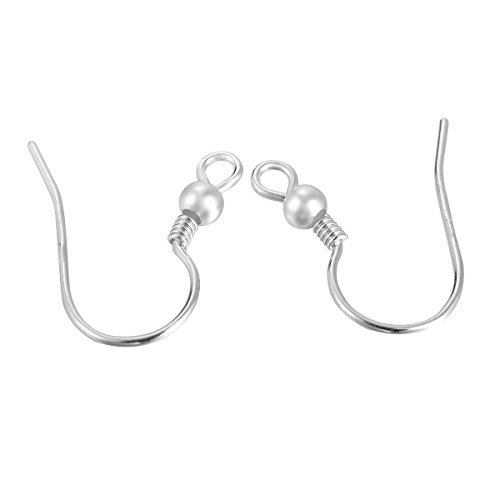 VALYRIA 2pcs Rhodium Ear Wire Hooks Earring Findings with Beads,16.8mmx14.5mm