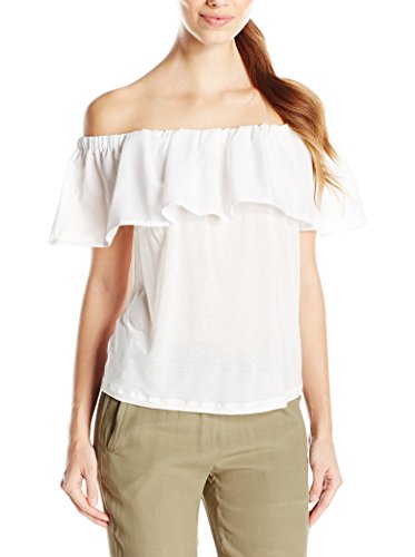 French Connection Women's Polly Plains Off-The-Shoulder Top, Summer White, Medium