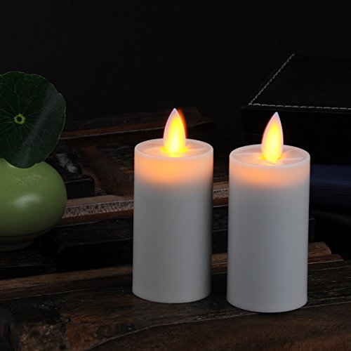 Calm-life Classic Pillar Real Flame-effect Flameless LED Candles 1.5" X 3" with Timer Feature Ivory Color - Set of 2