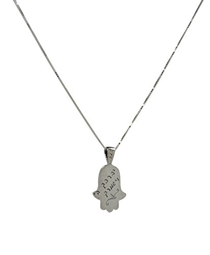 Birkat Kohanim Silver Hamsa Hand Charm Necklace for Protection on 19 Inch Box Chain