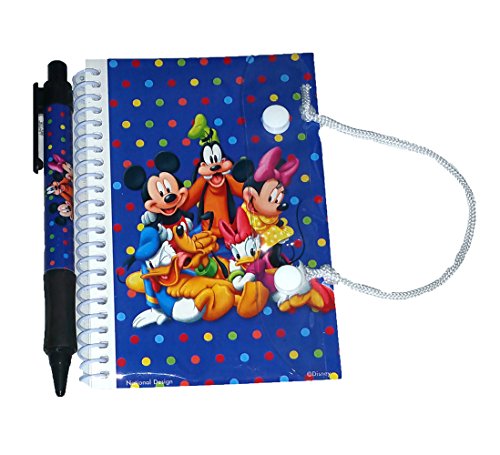 Disney Mickey Mouse Donald Duck Goofy Pluto Minnie Mouse Daisy Autograph Spiral Notebook and Pen Set (Blue)