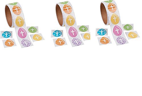 3 Rolls ~ Easter Egg Cross Stickers ~ 300 Assorted Colorful Party Favors ~ Easter Basket Filler ~ Bunny Gifts ~ Decorate Religious Sunday Bible School School ~ Teacher Classroom Gifts