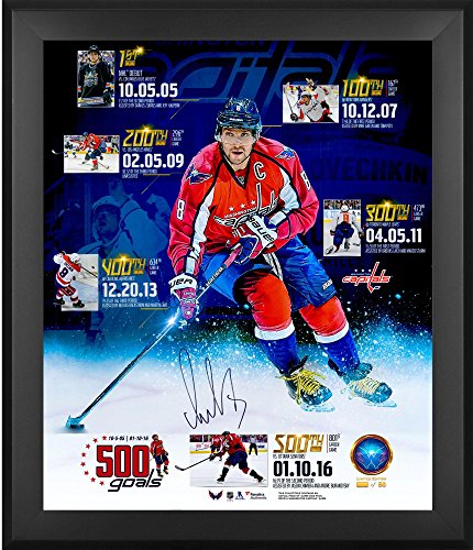 Alex Ovechkin Washington Capitals Framed Autographed 20" x 24" 500th Career Goal Timeline Photograph With A Piece of Game-Used Puck - #2-7, 9-49 of a Limited Edition of 50 - Fanatics Authentic Certified