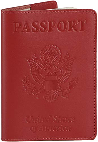 Shvigel Leather Passport Cover - Holder - for Men & Women - Passport Case (Red)