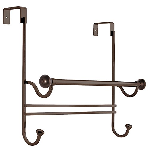 iDesign York Over the Bathroom Shower Door Bath Towel Bar with Hooks - Bronze