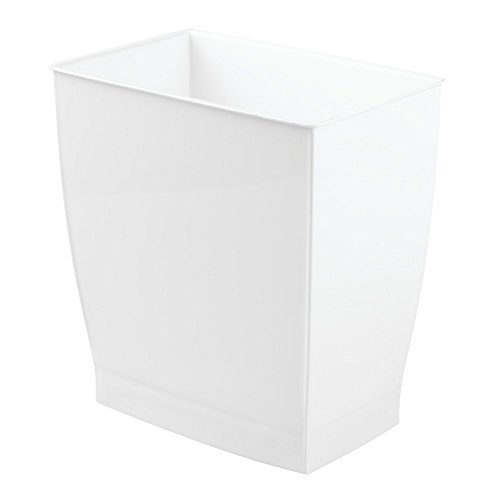 iDesign Spa Rectangular Trash Can, Waste Basket Garbage Can for Bathroom, Bedroom, Home Office, Dorm, College, 2.5 Gallon, White