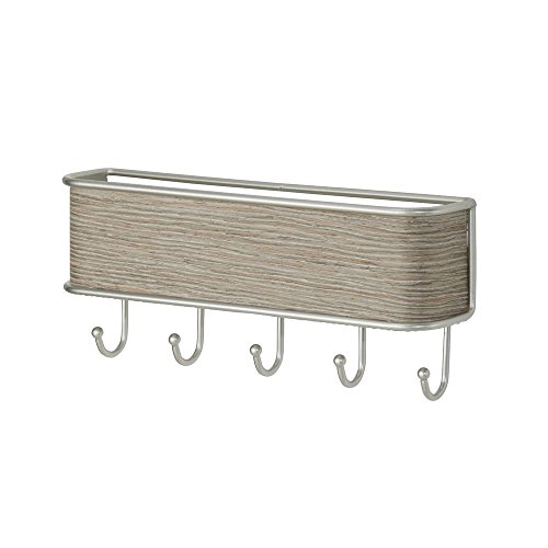 InterDesign RealWood Mail Organizer and Key Rack - Wall Mounted Letter Shelf and Key Hooks, Satin/Gray Wood Finish
