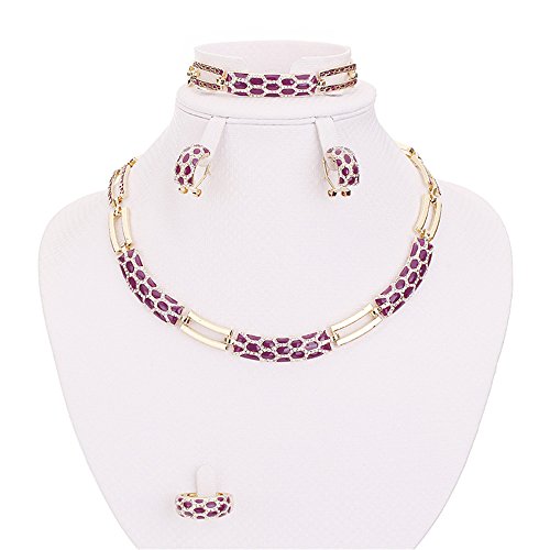 MOOCHI 18K Gold Plated Purple Turtle Shell Pattern Choker Necklace Earrings Bracelet Jewelry Set