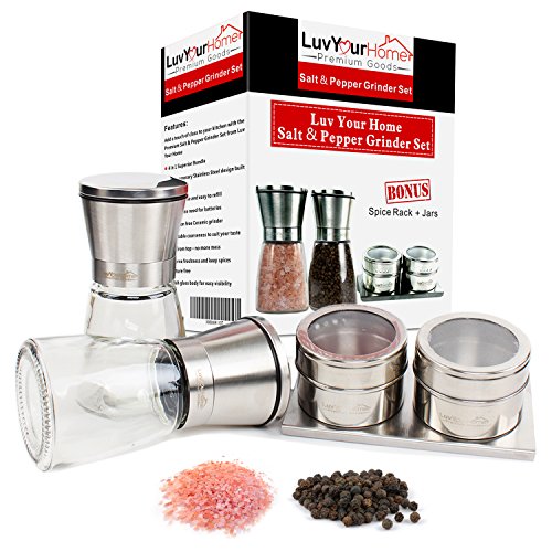 Luv Your Home Salt and Pepper Grinders with Magnetic Spice Jars and Rack - Spice Grinder with Adjustable Coarseness - Stainless Steel Salt and Pepper Shakers - Refillable Salt and Pepper Mills - eBook