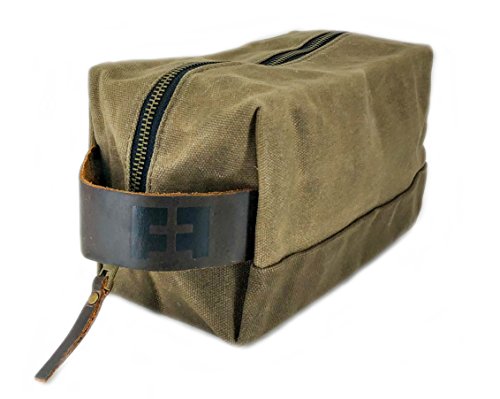 the DOPP KIT | Durable Waxed Cotton Canvas shave and toiletries bag with leather handle by Fat Felt
