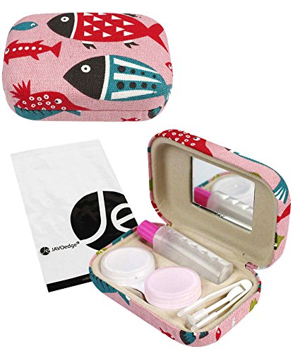 JAVOedge Pink Fish Pattern Fabric Contact Lens Travel Kit