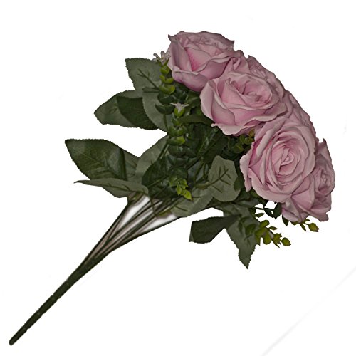ALEKO F10HRP17 Artificial Silk 17 Inch 10 Heads Pink Rose Flower Bouquet