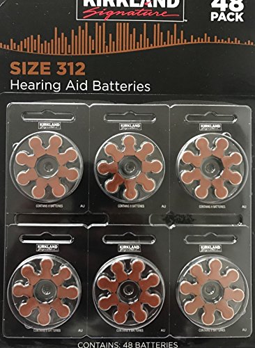 Kirkland Signature 1.45 Volt Mercury Free Premium Quality Hearing Aid Batteries, 312 (48-Pack)