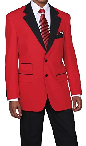 Men's Poplin Dacron 2button High Fashion Suit 2 Tone Red/Black, Royal/Black 7022