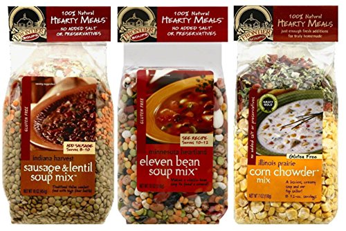 Frontier Soups Hearty Meals 3 Flavor Variety Bundle: (1) Indiana Harvest Sausage & Lentil, (1) Minnesota Heartland 11-Bean and (1) Illinois Prairie Corn Chowder, 16 oz each (3 Bags Total)