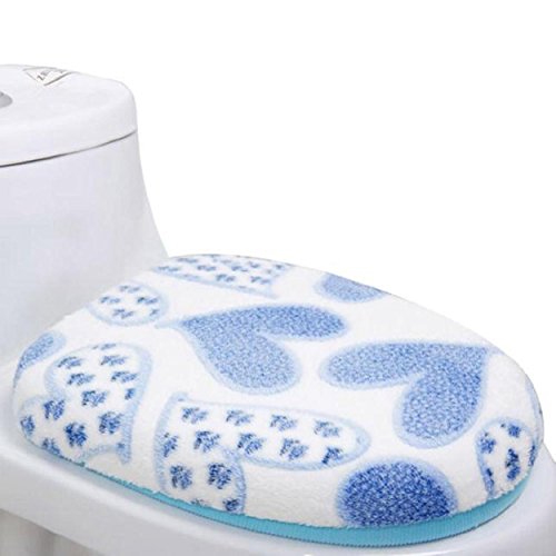 Kingfansion Coral Fleece 2 Piece Set Potty Toilet Cover O Ring Toilet Mat (Blue)