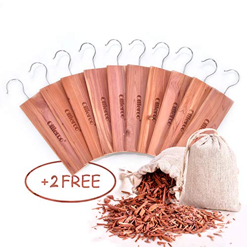 Ollieroo 12 Pack/1 Set Moth Protection Repellent 10x Cedar Hang Up & 2X Cedar Sachets Bag with Light Cedar Fragrance Odor Protection for wardrobes Large Size 9.05"x 2.6"x 0.4"