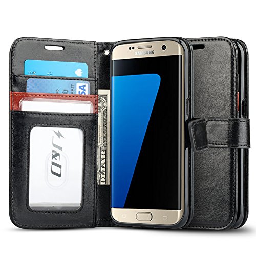 J&D Case Compatible for Galaxy S7 Edge Case, [Wallet Stand] [Slim Fit] Heavy Duty Protective Shock Resistant Flip Cover Wallet Case for Samsung Galaxy S7 Edge Wallet Case - Black/Brown