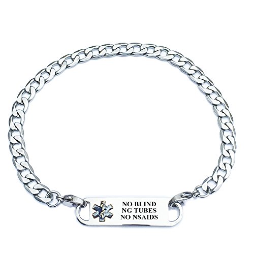 Pre-engraved Curb Link"No Blind NG Tube No NSAIDs" Medical Alert ID Bracelet