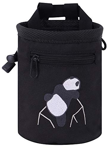 AMC Rock Climbing Panda Embroidered Chalk Bag with Zipper Pocket