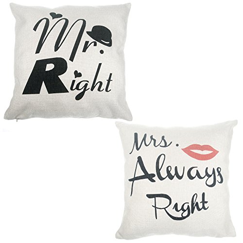 KI Store Set of 2pcs Decorative Couple Throw Pillow Cases Cushion Covers Square Great for Gift Wedding Anniversary Decorations(18”x18” Mr.right and Miss. always right)