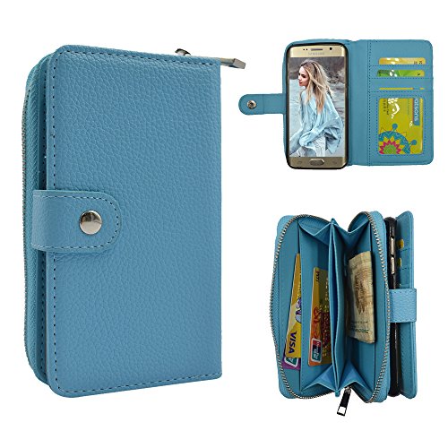 Galaxy S6 Edge Plus Case, TURF Pure Series PU Leather Wallet Zipper Case Detachable Folio Flip Holster Carrying Case with Card Slot Wrist Strap for Samsung Galaxy S6 Edge Plus (Blue)