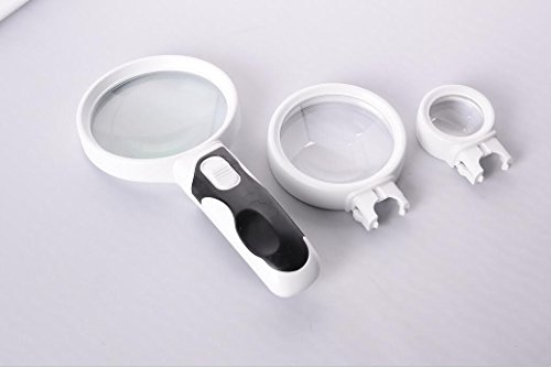 Handheld Magnifying Glass Set with 3 Illuminated Lens and LED Light - 2.5x 5x 16x | Best Magnifier for Reading Fine Print Newspapers, Jewelry Loupe, Sewing,stamps, Kids Science, and Travel