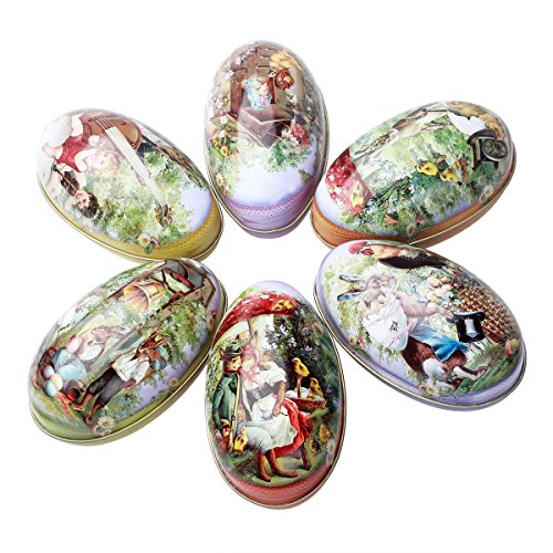 QNDREZ 6pcs Different Design Wedding Supplies Candy Packaging Box Tin Easter Day EggS Random Color 4.3*2.6*2.7 inch