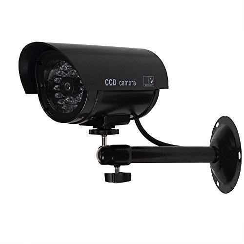 WALI Bullet Dummy Fake Surveillance Security CCTV Dome Camera Indoor Outdoor with 1 LED Light, Warning Security Alert Sticker Decals (TC-B1), Black