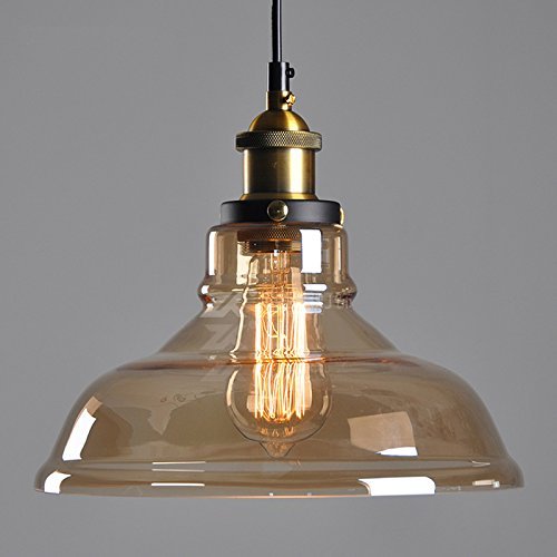 WINSOON 11 X 10 Inch Vintage Industrial Ceiling Lamp Clear Glass Pendant Lighting for Kitchen Island Loft Shade Fixture Amber Color