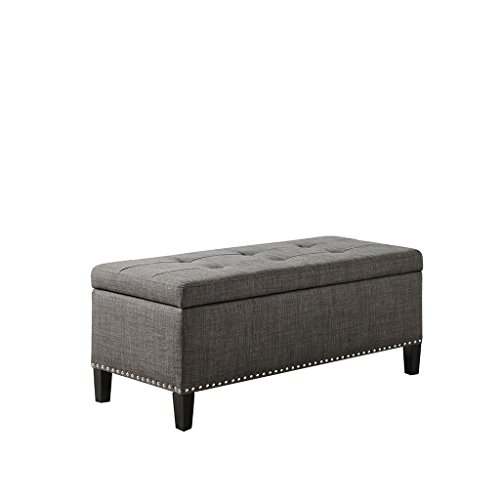 Madison Park FPF18-0502 Shandra II Storage Ottoman - Solid Wood, Polyester Fabric Toy Chest Modern Style Lift-Top Accent Bench for Bedroom Furniture, Medium, Charcoal