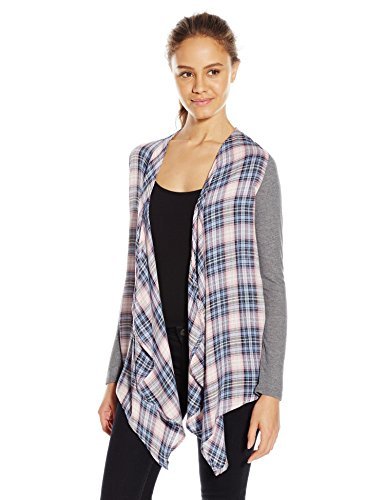 WallFlower Women's Rayon Challis Mixed Media Plaid Topper, Charcoal, Large
