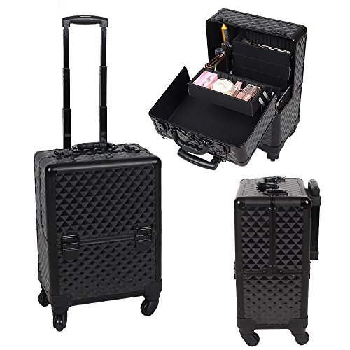 Ogima 4 in 1 Interchangeable Aluminum Rolling Makeup Case Cosmetic Train Box Easy Clean Extendable Trays (Large Pink)