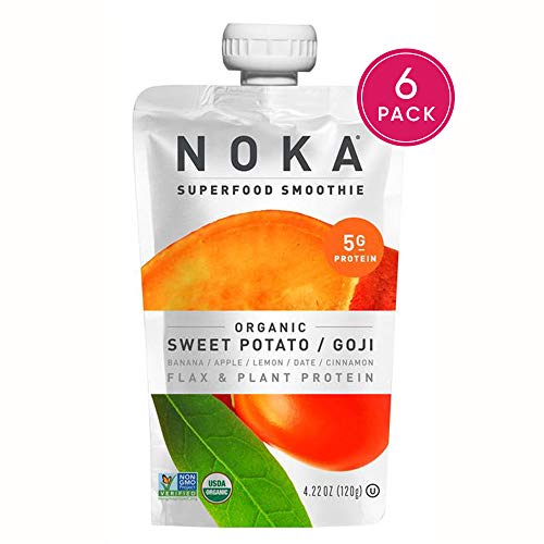 NOKA Superfood Pouches (Sweet Potato Goji) 6 Pack | 100% Organic Fruit And Veggie Smoothie Squeeze Packs | Non GMO, Gluten Free, Vegan, 5g Plant Protein | 4.2oz Each