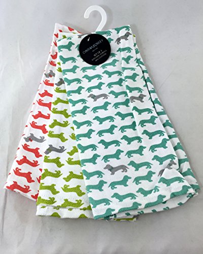 Cynthia Rowley Set of Three Kitchen Towels Dachshounds Multi