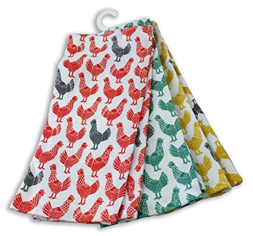 Cynthia Rowley Set of Three Kitchen Towels Chickens Multi