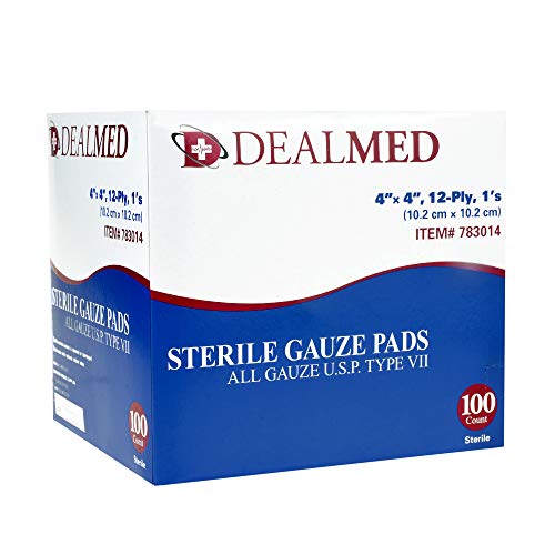 Dealmed Sterile Gauze Pads, Individually Wrapped Absorbent 4" x 4", 100/Box