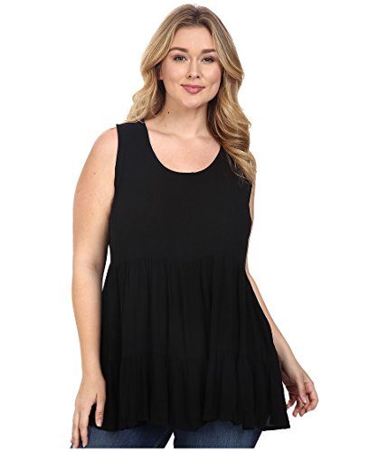 Karen Kane Women's Plus Size Sleeveless Double-Ruffle Top, Black, 2X