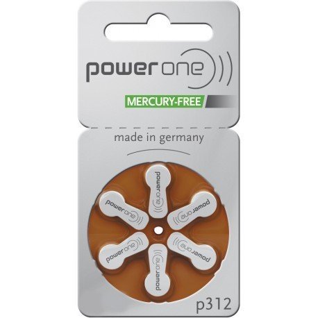 PowerOne Mercury Free Hearing Aid Batteries Size 312 - Pack of 30 + Free Battery Caddy