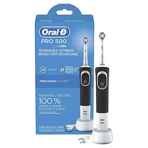 Oral-B Pro 500 Electric Power Rechargeable Toothbrush with Automatic Timer and Precision Clean Brush Head, Powered by Braun (Product Design & Packaging May Vary)