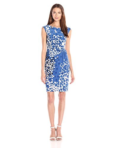 Anne Klein Women's Printed Ity Side Twist Pleated Dress, Bluebell Combo, 4