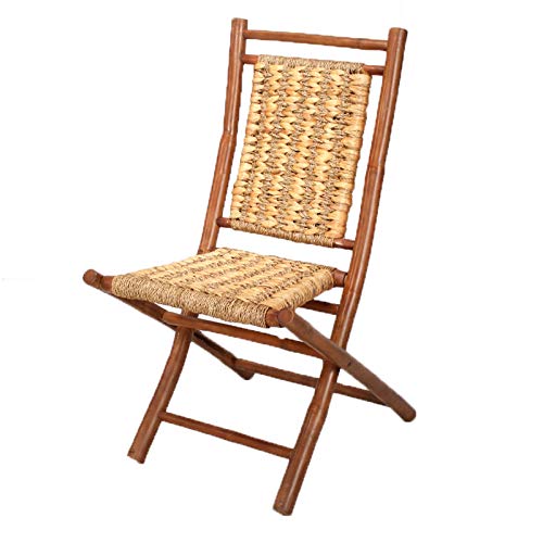 Heather Ann Creations Bamboo Folding Chairs with Open Link Combo Weave, Pack of 2, Brown and Natural