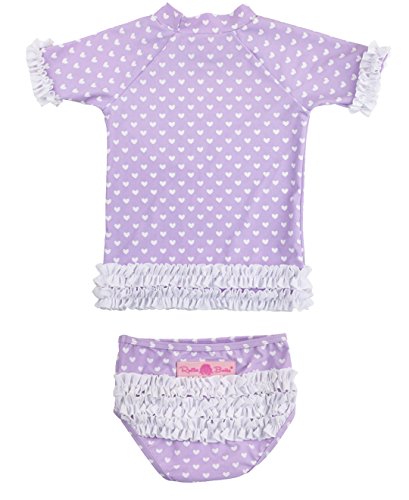 RuffleButts Little Girls Lavender Heart Ruffled Rash Guard Bikini