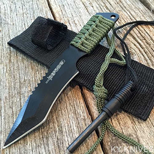 Black Full Tang Tanto Survival Hunting Knife w/ Fire Starter Flint 5738 Sealed In Mstechcorp Packaging