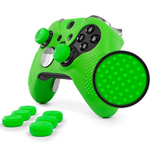 Foamy Lizard ElitePro Grip Studded Skin Set for Xbox One Elite Controller Sweat Free Silicone Skin w/Raised Anti-Slip Studs Plus Set of 8 QSX-Elite Thumb Grips (Skin + QSX-E Grips, Green)