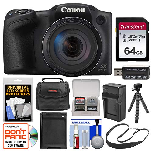 Canon PowerShot SX420 is Wi-Fi Digital Camera (Black) with 64GB Card + Case + Battery & Charger + Flex Tripod + Sling Strap + Kit