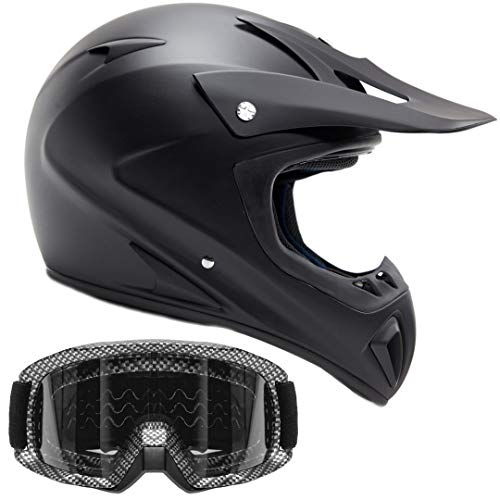 Typhoon Adult ATV Helmet & Goggles Gear Combo, Black w/Carbon Fiber (Medium)