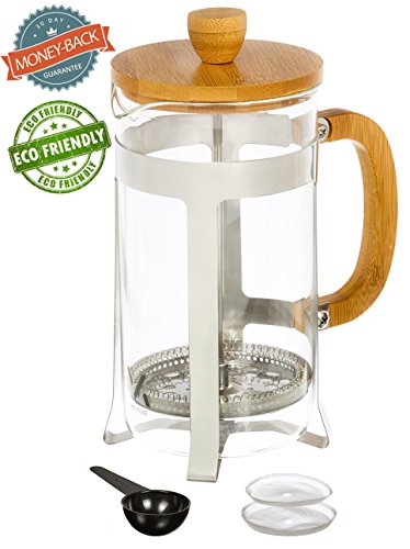 Urban Galley French Press Coffee Espresso Tea Maker with Stainless Steel Plunger, Pyrex Glass and Bamboo Wood (1000ml/34oz.)